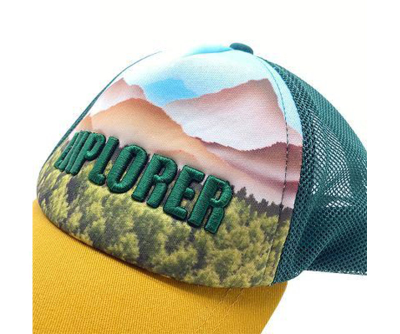Sublimation printing can be designed by yourself, it is a good way to print the wonderful object or complex pattern on the cap. And there is a letter 3D embroidery on the cap, also, if you need, our professional team will help you embroider your own logo on it. Mesh back is very suitable for summer to wear.