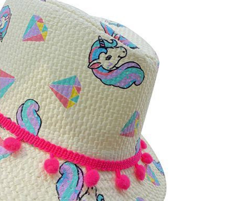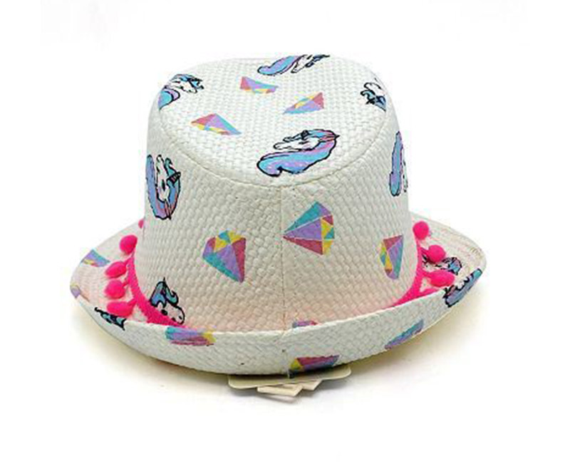 Girls Unicorn Diamond Printing Neon Print Balls Band Strawt Hat Fedora